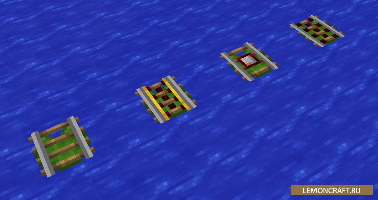 Мод Floating Rails добавляет в игру рельсы, которые можно проложить по воде или по лаве. Если точнее, блок рельсов будет ставиться на кувшинки, которые наконец то найдут себе применение. Теперь вам не придется строить целые сооружения в виде мостов, достаточно проложить железную дорогу прямо по жидкости.