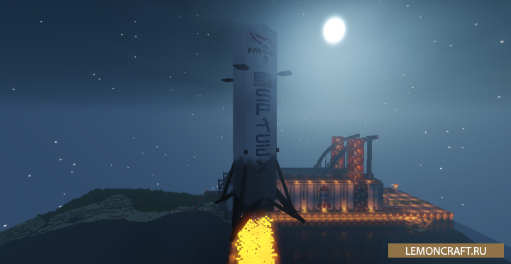 Мод SpaceX является аддоном для знаменитого мода GalactiCraft, который добавляет в игру ракету Falcon 9 и посадочную капсулу Dragon capsule. Данная ракета является многоразовой. Когда отходит первая ступень она возвращается на землю и вы снова можете ее применить. А присоединив к ракете капсулу сможете и сами покорить космос и вернуться на землю в целости.